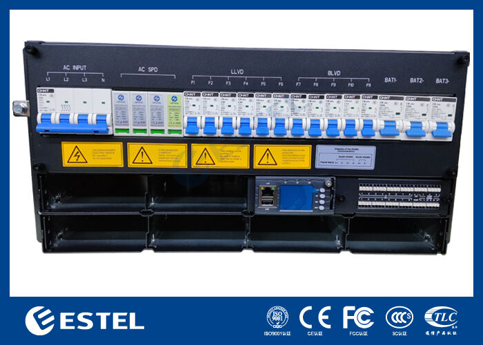 Panel distribusi DC dilengkapi dengan pemutus sirkuit baterai 3 * 125A / 1P dan termasukLLVD dan aFungsi BLVD untuk manajemen daya yang aman dan fleksibel. Sistem intelijen disediakan oleh pengontrol khusus yang menampilkan 4 input sensor analog, 8 input status digital,dan 8 relay alarm kontak kering yang dapat dikonfigurasiPemantauan dan manajemen jarak jauh diaktifkan melalui antarmuka RS232/485 dan SNMP, sementara tampilan LCD terintegrasi memungkinkan untuk melihat dan konfigurasi status lokal.